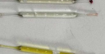 What’s this? Found under a bathroom vanity during remodeling—small glass tubes, 2 inches long, filled with liquid. Any ideas?