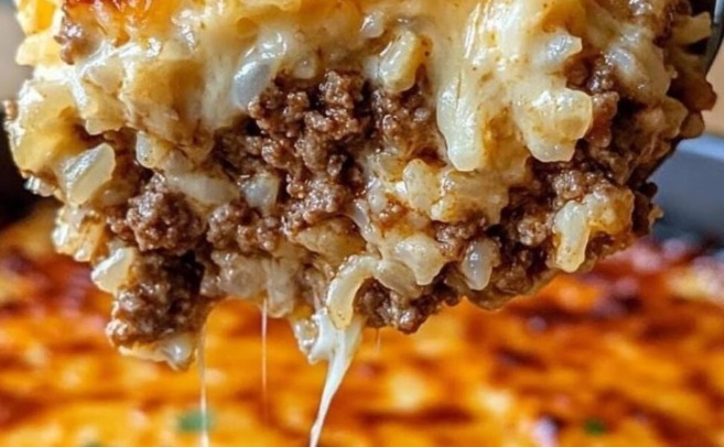 Cheesy Ground Beef and Rice Casserole