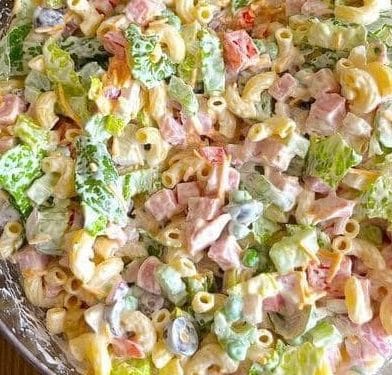 The pasta salad with layers is a fun variation of the usual pasta salad because it has many different textures and tastes combined together to make one beautiful dish. This dish is not only tasty but also very appealing visually so it can be served at any gathering or meal. From colorful vegetables, tender pasta, savory meats, and creamy dressings each bite will burst in your mouth.