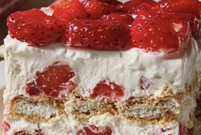This Strawberry Cream Cheese Icebox Cake is a fantastic no-bake dessert that’s perfect for serving a crowd. Thanks to the combination of cheesecake-flavored pudding and sweetened condensed milk, the filling turns out extra rich and holds its shape beautifully—much sturdier than simple whipped cream alone. As the cake chills, the graham crackers absorb moisture from the creamy layers, softening into a tender, cake-like texture.