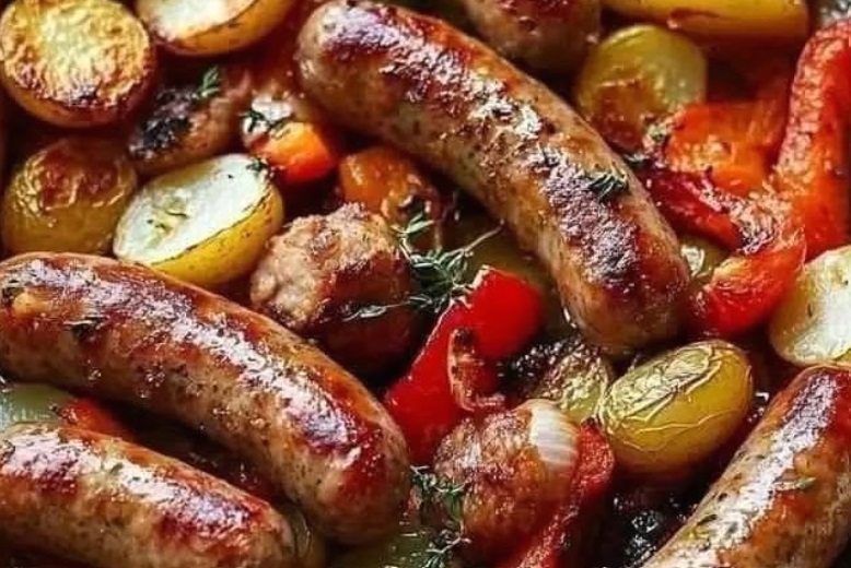 Oven-roasted sausages with potatoes and peppers proves that comfort doesn’t need to be complicated. With minimal effort, you get a colorful, hearty, and irresistibly delicious meal.